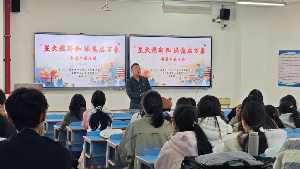 讲座以“星火燃新知,绿意启万象”为主题。刘凯良老师从星火馆的起源与意义引入,结合植物研究的历史与故事,生动拉近了同学们与植物科学的距离。他系统讲解了植物的分类特征、生长习性及其在生态系统中的重要价值,并结合当前生态环境实际,深入阐述了生物多样性保护的科学理念与现实意义。通过丰富案例与专业解读,刘老师强调了植物作为生态系统基石的关键作用,引导同学们深刻理解保护植物、维护生态平衡的紧迫性与责任感。