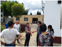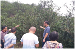 刘伟院长(右)等与负责人阮宜补(左)会面 考察原生态高山野茶园基地