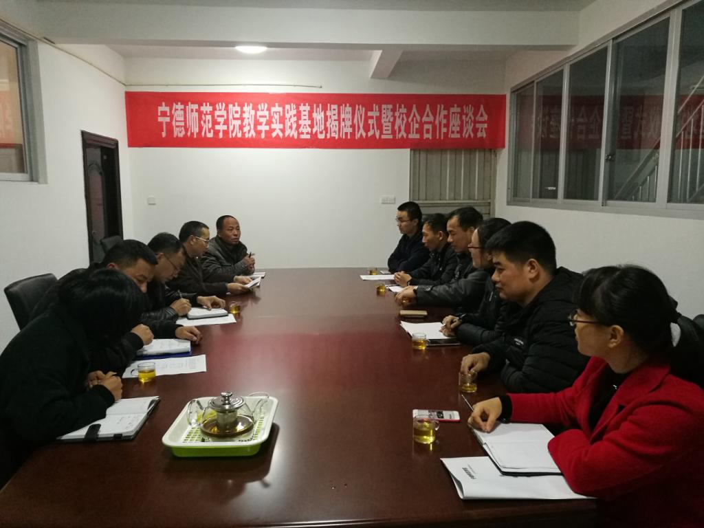 2017年12月8日下午英国365集团刘伟院长、校企合作中心主任江胜滔等一行6人赴寿宁县宁德福瑞泰生物科技有限公司进行“校外教学实践基地”挂牌并就相关事宜进行洽谈。