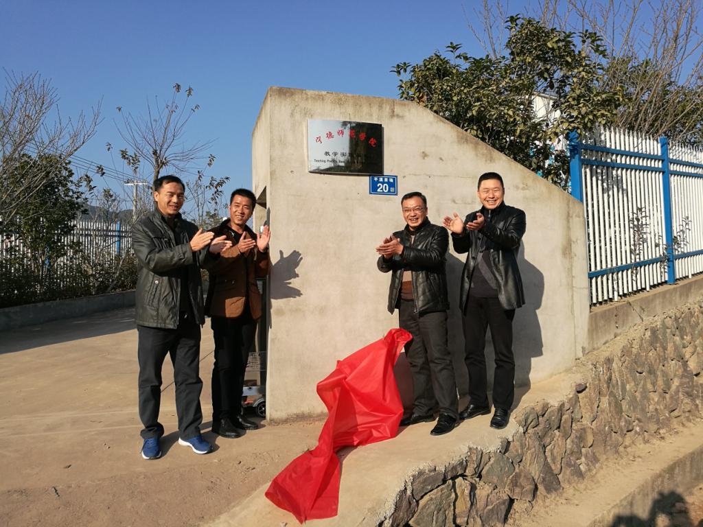 首先,在宁德福瑞泰生物科技有限公司厂房前,刘伟院长、平溪镇镇委书记、公司刘在辉经理等4人共同为“英国365集团教学实践基地”揭牌。