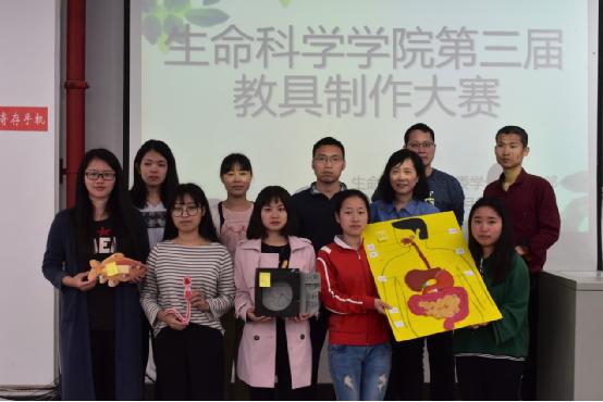 2018年4月22日上午,由生命科学学院主办的第三届教具制作大赛在CC201正式举行。大赛邀请罗芬、刘凯良、史辉、周逢芳和周银珠5位老师担任评委。大赛分三个环节:选手展示作品、讲解作品以及评委进行点评和打分。