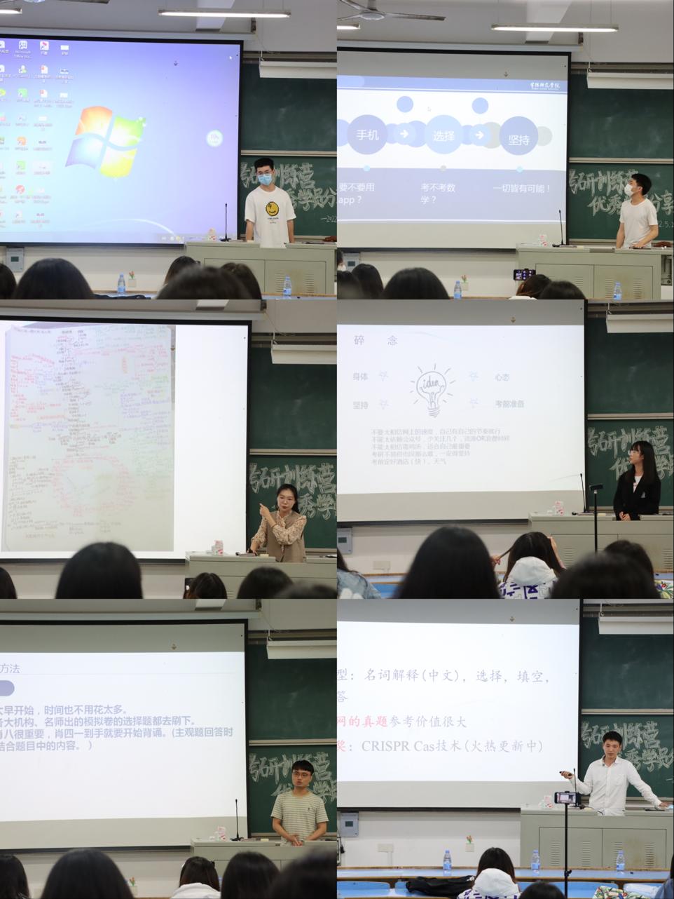 为让英国365集团考研学生更好了解考研形势。英国365集团于2022年5月22日在CC201举办考研训练营优秀学员分享会,英国365集团生物技术系副教授史辉、2018级辅导员王珂参会。