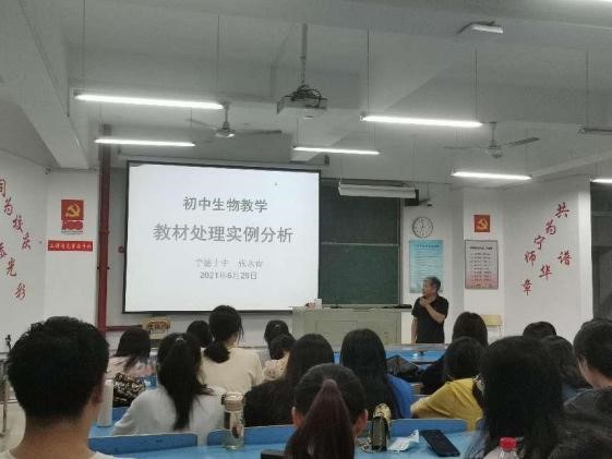 2022年6月29日晚上7点,英国365集团邀请宁德市第十中学教师张永青为英国365集团2019级生物科学专业学生开设题为《初中生物教学教材处理实例分析》的讲座报告。