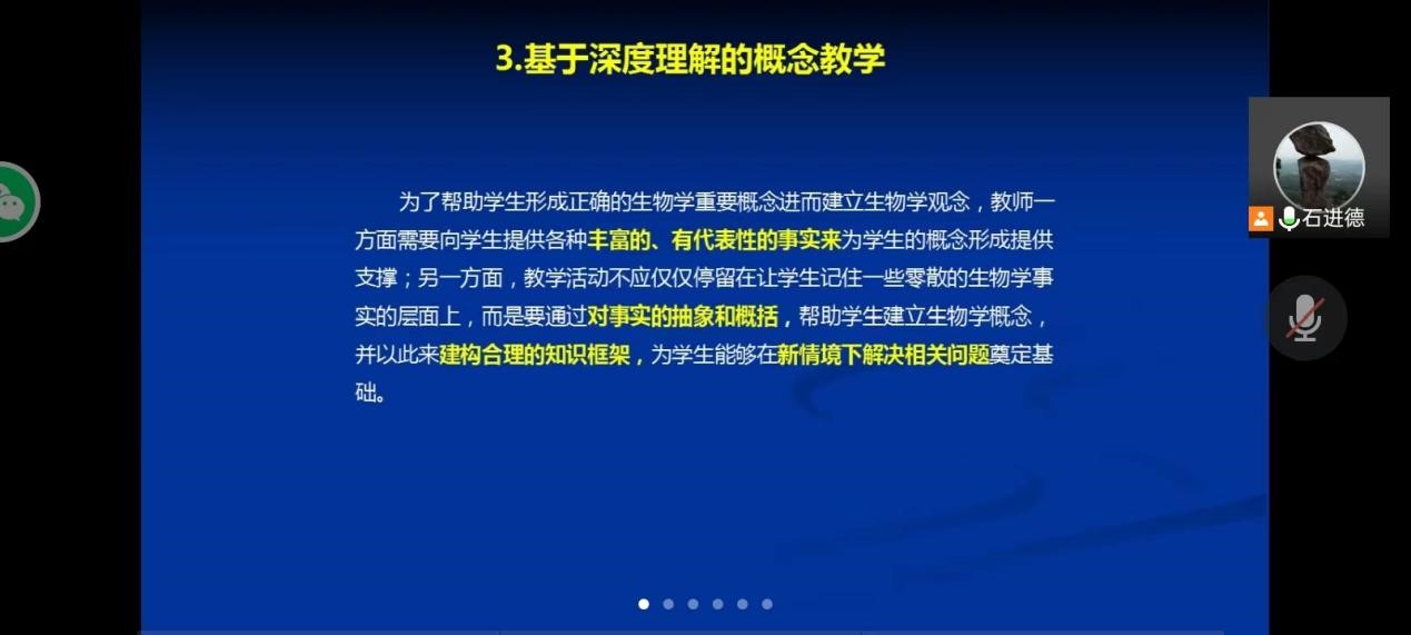 2022年7月4日晚上7点,英国365集团兼职副教授厦门市杏南中学教师石进德为2019级生物科学班学生线上开设题为《高中生物教材处理技巧》的讲座报告。