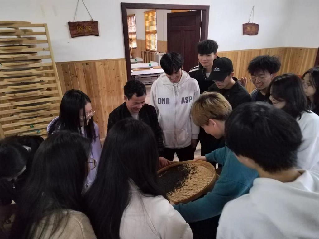 同学们在省茶科所的茶树种质资源圃里,听王振康研究员讲述福云系列、茗科1号、金牡丹等国家级树良种的选育历程和品种特征,学习了红、绿、白茶和条形乌龙茶兼制生产线。到坦洋茶场,同学们认真参观了工夫红茶初、精制生产车间和坦洋工夫茶博馆、传习所,跟着林建华农艺师体验坦洋工夫红茶的抖筛、圆筛等传统手工精制作业技巧。最后还在驻村干部陈振浩的带领下,探访了百年红茶“坦洋工夫”发祥地——坦洋村,到坦洋工夫传统制茶工房——横楼,了解传统制茶车间设计与工艺,参观“振兴之路”主题馆。