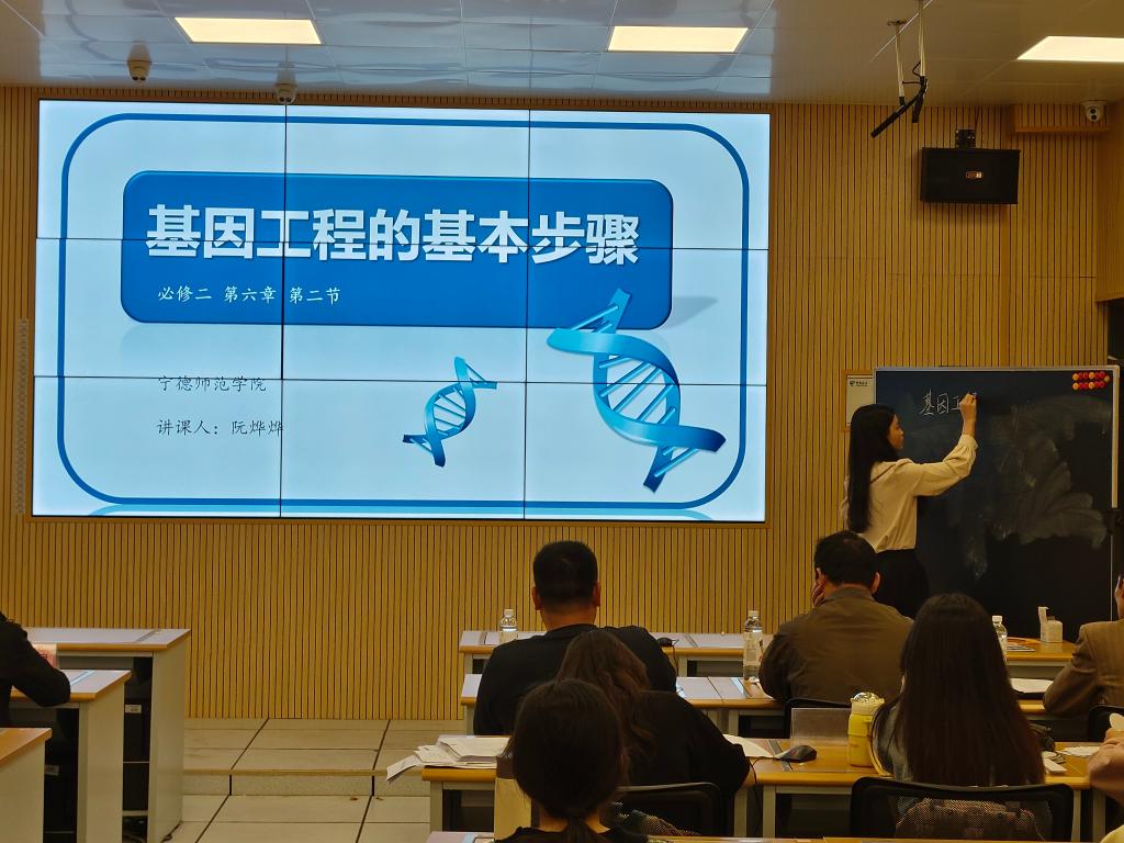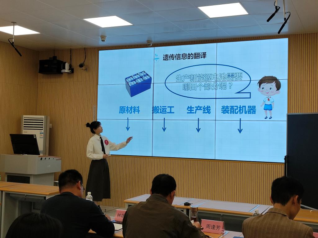 比赛期间,每位参赛选手进行限时五分钟的微课试讲,选手们准备充分,教学过程设计合理,教学方式独特新颖。2020级生物科学班的阮烨烨授课时表现突出,合理使用PPT、教具等教学形式,在重点讲解基因工程的基本步骤时,充分利用黑板板书,积极与学生互动,为观众带来了一节精彩的微课;2020级生物科学班何子泓授课时教态自然,形象生动,积极调动课堂气氛,激发学生兴趣,使得观众们都聚精会神地听课并且做出思考,课后场下响起热烈的掌声……随着第十七位选手的授课完毕,本次初赛落下帷幕。