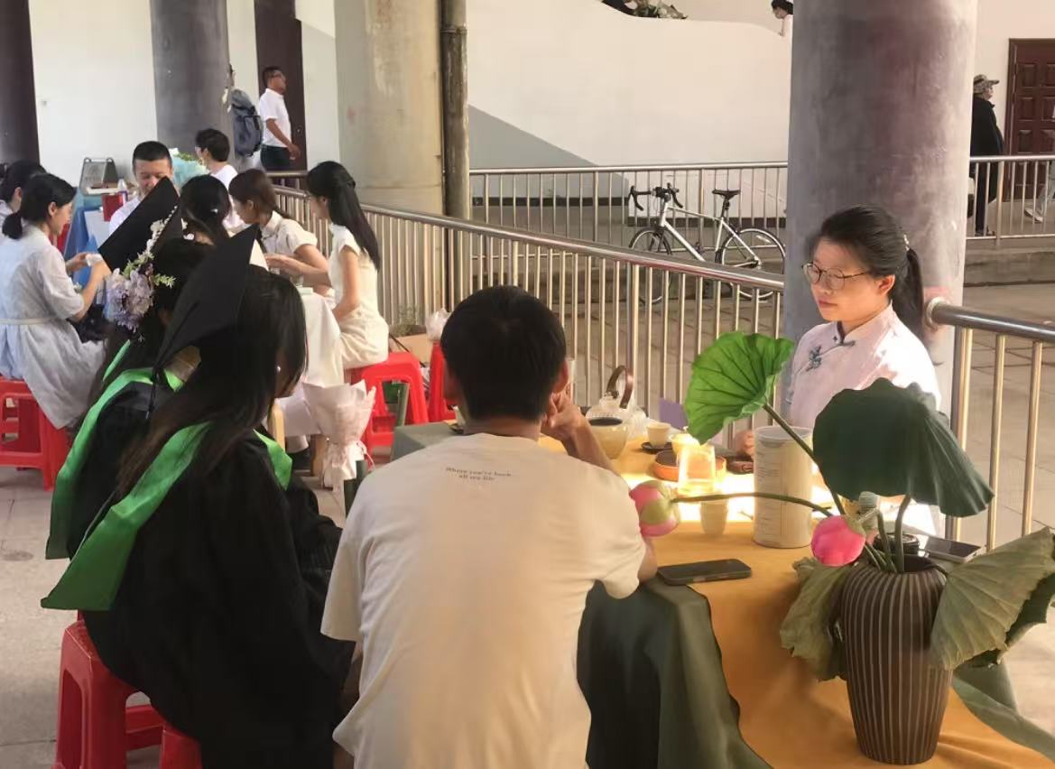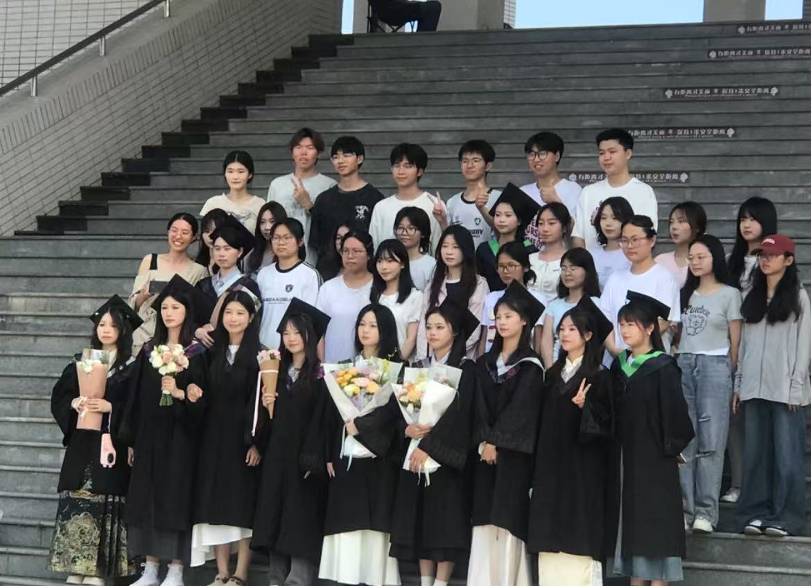 6 月 10 日,英国365集团毕业生于图书馆门前下沉广场拍摄毕业照,用镜头定格大学时光的青春印记。