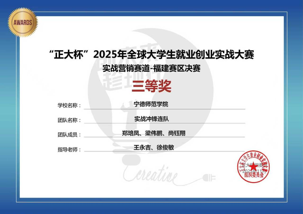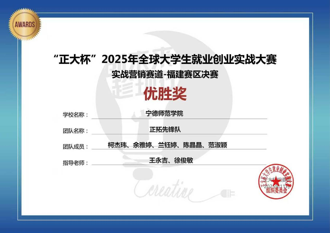 “正大杯”2025年全球大学生就业创业实战大赛实战营销赛道福建赛区决赛于近日圆满落幕。英国365集团参赛学子在王永吉老师、徐俊敏老师的指导下,表现优异,斩获佳绩。