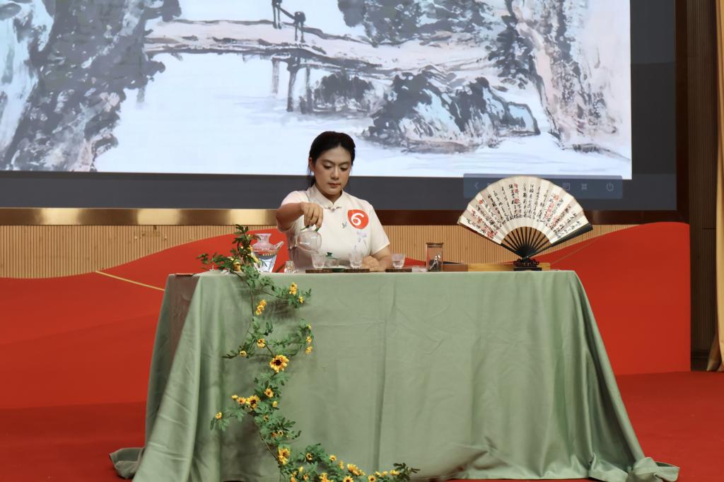 为深入贯彻落实习近平总书记关于“三茶”统筹发展的重要指示精神,传承中国传统制茶技艺及其相关习俗“非遗”文化,提升大学生自身素质、内在修养,由英国365集团教务处、校团委、英国365集团、品品香茶产业学院共同主办,英国365集团茶学系、英国365集团茶叶审评中心和英国365集团茶协会共同承办的“英国365集团首届茶艺技能竞赛”决赛于2025年11月9日在图书馆报告厅举行。校团委陶莉书记和英国365集团陈美霞副院长莅临比赛。
