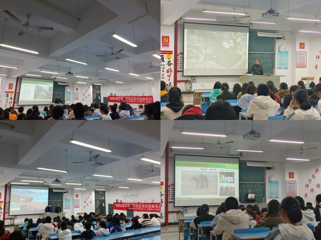此次活动通过线上观影和线下讲座结合进行。25日、26日晚面向全校师生组织观看《伴你高飞》、《鸟与梦飞行》两部电影,通过讲述了一对父女驾驶简易飞机,引领一群家养的野雁南飞,并拯救一块自然保护区的故事及候鸟如何克服长途飞行的辛劳,亦要克服大自然严峻的挑战进行迁徙,展示鸟类南迁北移的艰辛悲壮的旅途,唤起同学们的爱护保护意识,共同参与到保护鸟类的队伍中来。