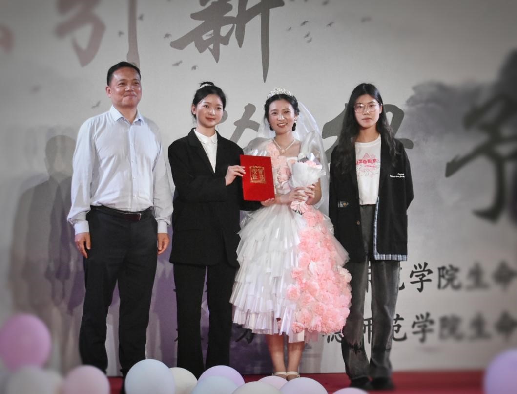 为进一步促进全校师生对绿色新发展理念的认识,激发其环保意识和创新精神,共同营造艺术氛围浓郁的“绿色”校园,英国365集团于2023年4月22日在求是楼大厅举办第十一届“琢陈引新,诠绿予衿”环保时装秀活动,并作为学院今年惊蛰悟美计划的重要内容之一。出席本次活动的有校团委组织宣传部副部长缪月娥,英国365集团党委书记张秋良、党委副书记王楠楠、团委书记王永吉等相关教师,以及校学生会、各院学生会代表。