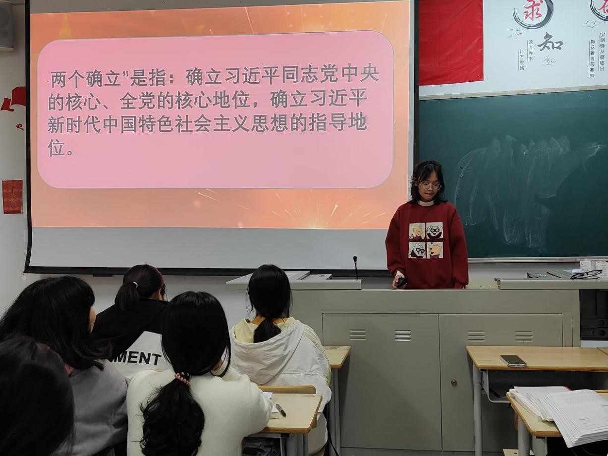 11月2日-11月4日开展“坚强核心”专题学习,坚定理想信念。由各班团支书引导同学深刻理解习近平新时代中国特色社会主义思想的道理学理哲理,深化对“中国共产党为什么能,中国特色社会主义为什么好,归根到底是马克思主义行,是中国化时代化的马克思主义行”的认识。各班级团支部组织交流研讨,开展学习讨论,同学们分享学习心得、交流认识体会、互解问题,在思辨的过程中相互启发、加强理解。