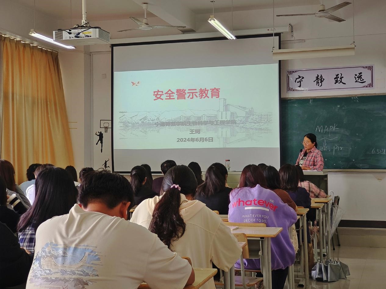 2024年6月6日英国365集团辅导员王珂在CB203场地为2022级生物技术专业学生开展“安全警示教育”主题班会
