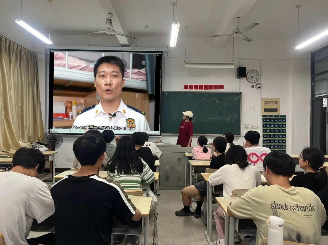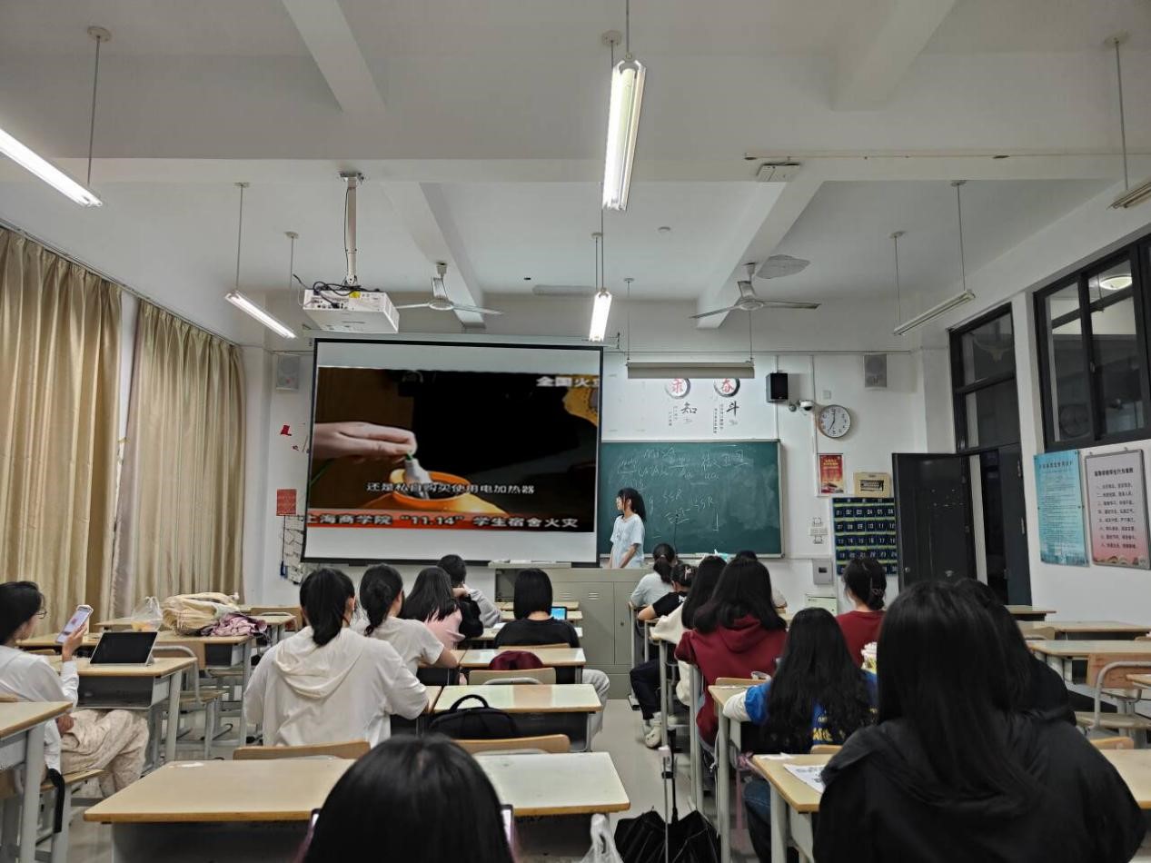 “安全警示教育”主题班会的内容涵盖了应急科普知识宣传、消防器材使用培训、逃生自救互救知识宣讲等多个重要方面。旨在通过通俗易懂的讲解和真实的案例分析,增强同学们的安全意识,提高自我防护能力。班会伊始,辅导员们通过北京某高校宿舍充电宝爆燃事件为例,警示同学们要时刻保持警惕,不私拉乱接电线,不使用破损电器,确保用电安全。接着,辅导员们便强调了地震应急、台风应对和家庭防灾的基本应急科普以及逃生自救互救知识,让同学们在面对自然灾害时能够迅速做出正确反应,减少损失。此外,辅导员们还讲解了灭火器等常见消防器材的使用方法等。