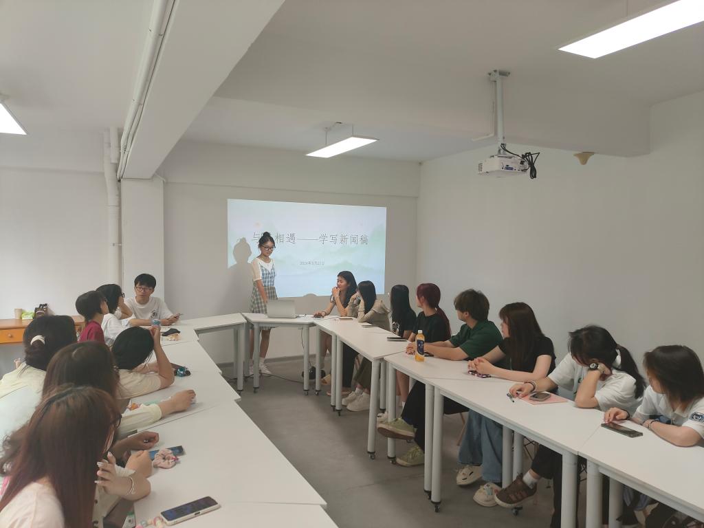为提升英国365集团团委、学生会、社团干部的新闻写作能力,5月27日在一站式社区多功能研讨室1举办了“与美相遇——学写新闻稿”培训会。本次培训会由学生会组织,宣传部负责人卜晨曦主讲,团委、学生会、社团负责人参与学习。