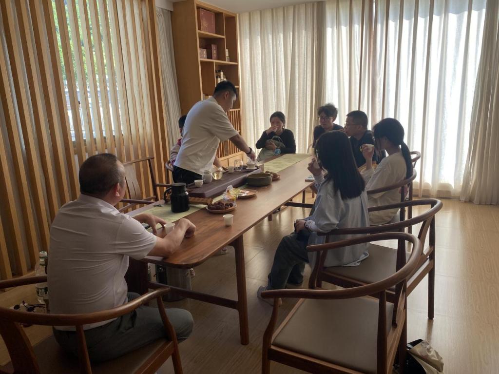 随后,实践队前往鼎白茶业有限公司,与公司负责人进行了深入交流。他们了解了该企业在碳减排工作中取得的经验和成果,并就茶产业碳足迹的监测、减排策略以及可持续发展等相关话题展开了热烈讨论,共同探讨茶产业在乡村振兴中的新角色和新使命。