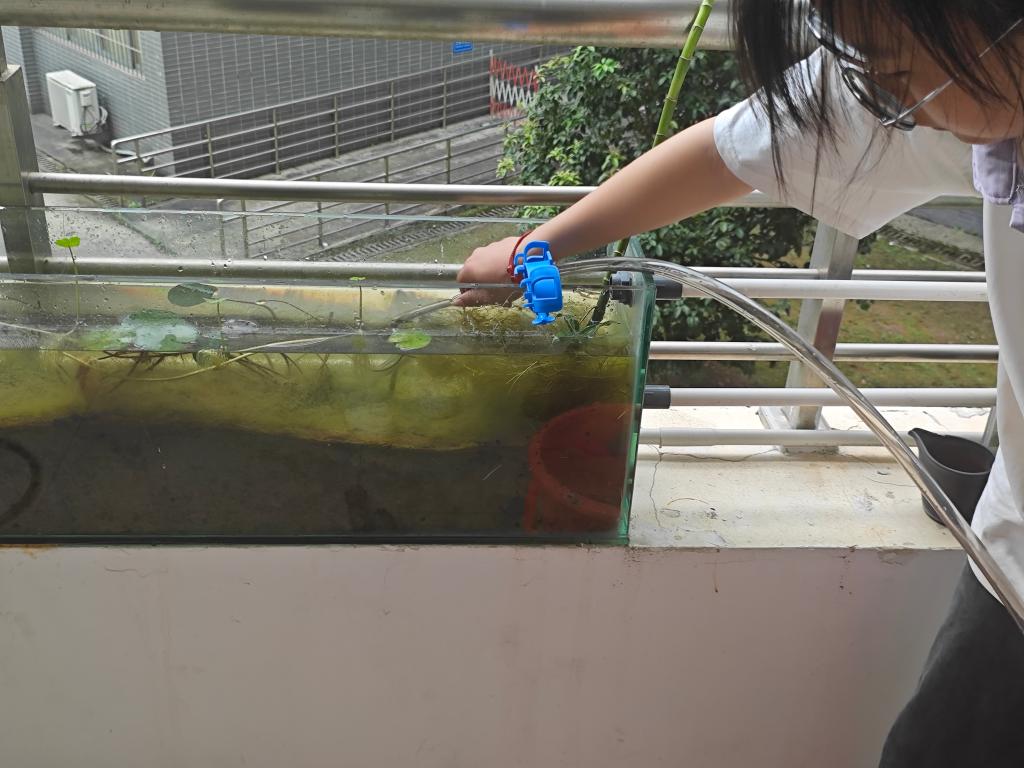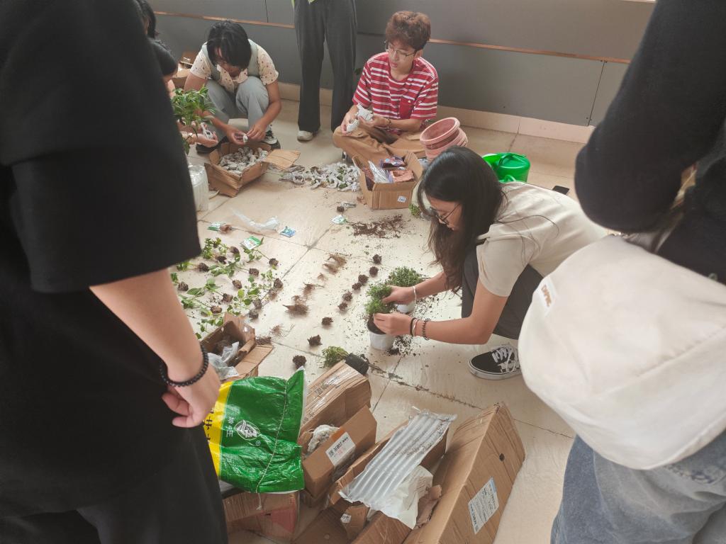 活动开始前,实践部的同学提前达现场,将活动所需的植物和工具准备好,方便各班同学使用。同时,他们给学生们分发工具并划分了各班种植的区域,实践部的同学们负责鱼缸的清洗和换水工作。接着,大家找到自己班级所负责的区域开始种植,多肉、太阳花、薰衣草,植物种类丰富,颜色饱满。实践部的同学们妥善安排了新来的小鱼和乌龟,便开始了大小鱼缸的清洁工作。同学们沉浸在植物种植的劳动中,认真仔细、欢声笑语。最后,实践部的同学们为小乌龟在水缸中安家,其他同学们完成植物种植后打扫走廊。