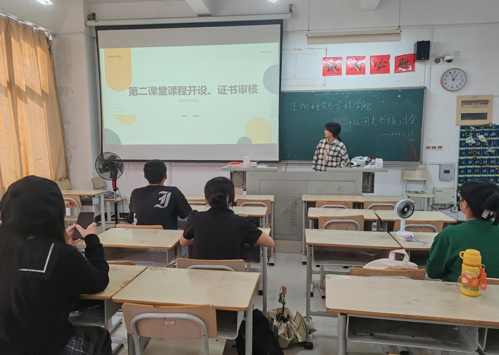 接着由院团委文体实践部负责人王欣玥从第二课堂的导入要求、补录要求、证书审核、导分模板等方面介绍团支书在第二课堂的使用及注意事项。同时她也鼓励各班团支书撰写策划书举办班级活动,引领同学们积极参与各种活动,活跃班级氛围,创建五育并举班级,提高同学们自身素质。她也强调各班团支书需要严格按照相关文件规范开设第二课堂,建议各班团支书一次性认真做好事情,以免后期不必要的麻烦。