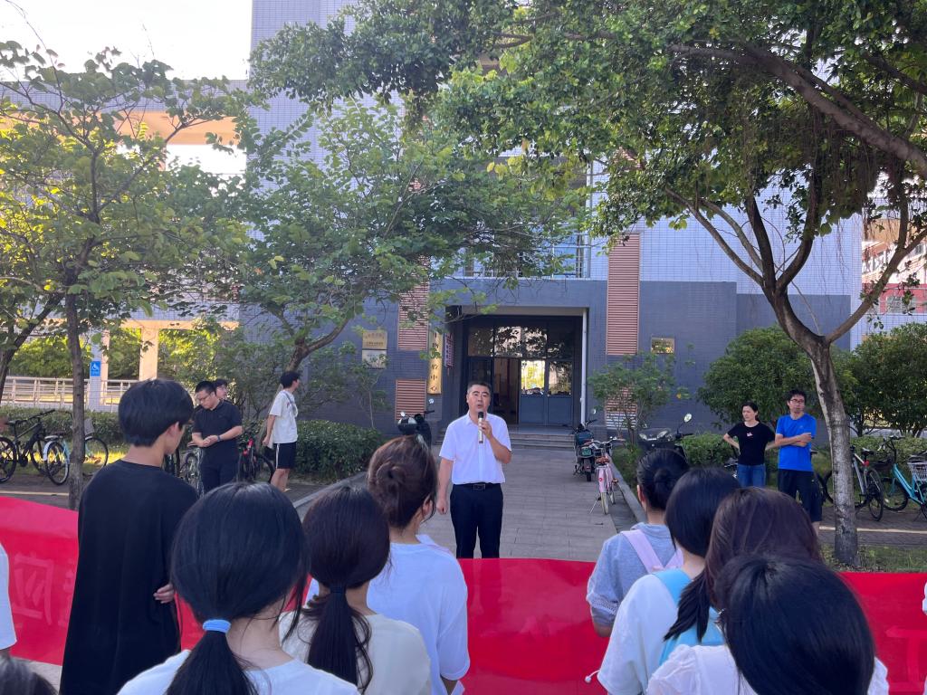 下午3点30分,演练正式开始。随着警报声响起,247名新生在安全员引导下,迅速反应,采取低姿弯腰姿势,按照指定疏散路线快速、有序撤离实验楼。疏散过程中无推挤现象,全程高效顺畅,展现出良好的纪律意识和协作精神。全体人员安全撤离至求索大道指定集结点后,各班负责人立即清点人数,确认全员安全疏散到位。