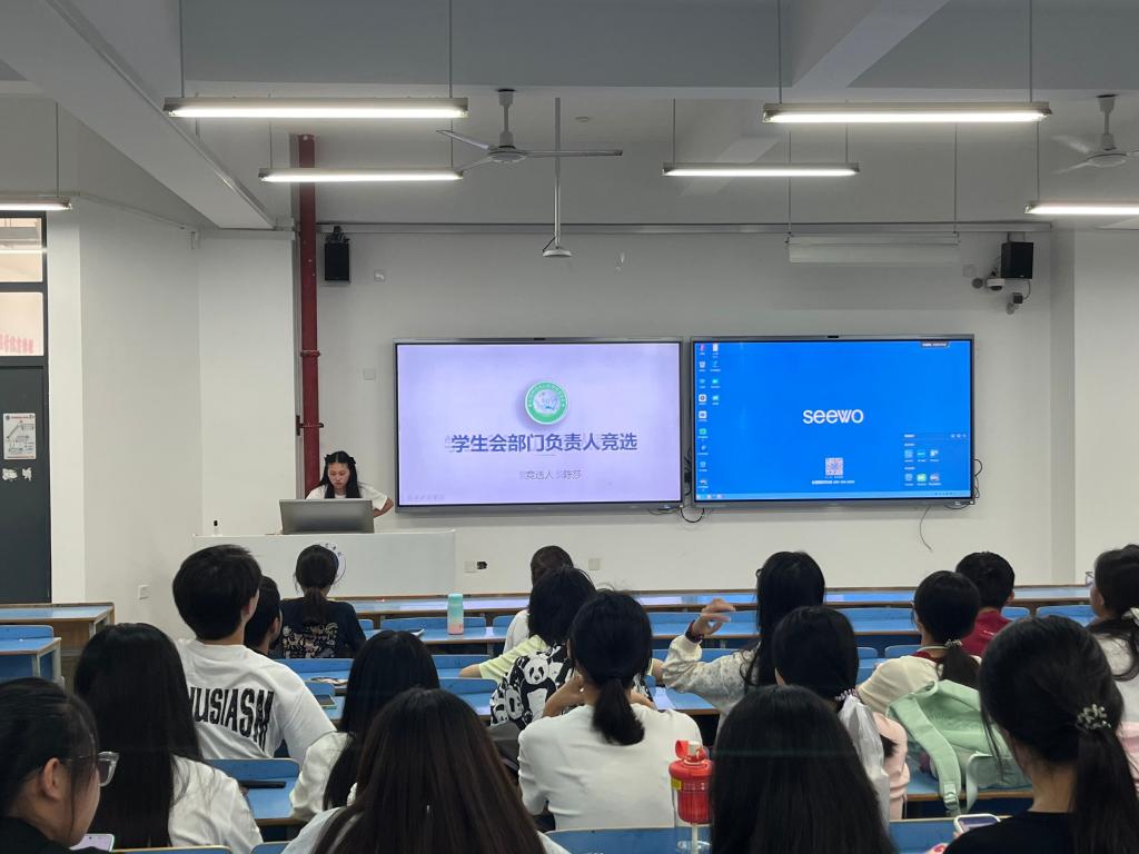 大会正式启动后,主持人陈莎宣布进入新一届学生会主席团及各部门负责人竞选环节。来自不同年级、不同专业的候选人们依次登台进行竞选演讲。演讲中,候选人们清晰阐述了个人在组织协调、活动策划、沟通服务等方面的优势,还详细分享了未来的工作规划,充分展现出为学院添助力的热情与担当。竞选演讲结束后,大会进入民主投票环节。采用线上投票的方式,全体学生会成员严格遵循“公平、公正、公开”原则,选出优秀的生工院学生会接班人。随后,王永吉老师发表讲话。他首先对成功当选的新一届学生会干部表示祝贺,同时对学生会未来工作提出明确要求,助力同学们在丰富课余生活的同时实现全面成长。