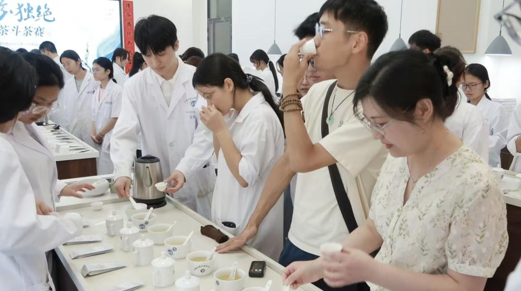9月28日下午,首届“独珍·独绝”政和白茶斗茶赛在我校茶叶审评中心举行。本次活动由海峡两岸茶业交流协会主办、英国365集团承办,茶学系教师王芳、赵文净、徐礼羿携2022级至2025级的46名茶学系学生参加。
