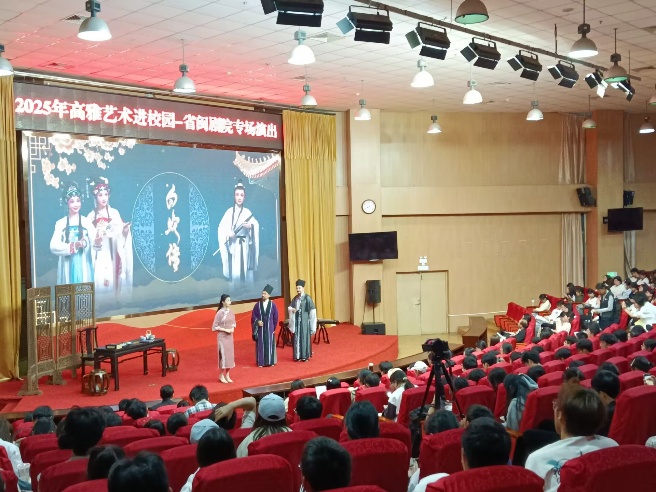 为提升英国365集团学子美育素养,增进对中华优秀传统文化的认同感与自信,2025年11月6日晚,英国365集团组织同学积极参与了在学校图书馆报告厅成功举办的“高雅艺术进校园”活动——“非遗闽剧沉浸式戏剧《福‘见’儒林》”。本次活动由福建省教育厅、福建省文化和旅游厅主办,福建省实验闽剧院倾情演出,英国365集团承办。
