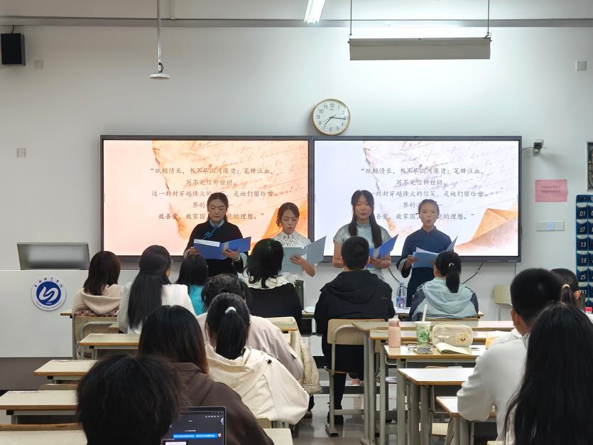 为深入学习贯彻习近平新时代中国特色社会主义思想,传承红色基因、弘扬革命文化,进一步提升学生语言文字应用能力与人文素养,展现新时代青年学子的精神风貌,学院于 2025 年 11 月 12 日 在 CC204 教室隆重举办“诵红色经典,传革命薪火” 红色经典诵读比赛。本次比赛邀请高建梅、王永吉、林姗、周莹、吴越五位老师担任评委,共有 18 支参赛队伍同台竞技。