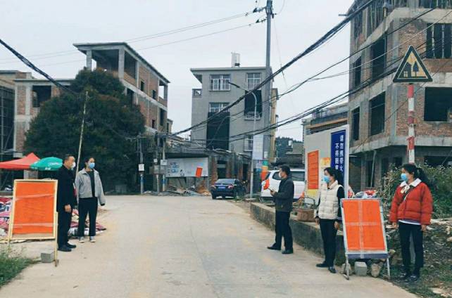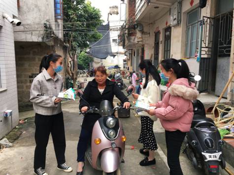 (图为郑立华和志愿者们为入村宣传防控知识)