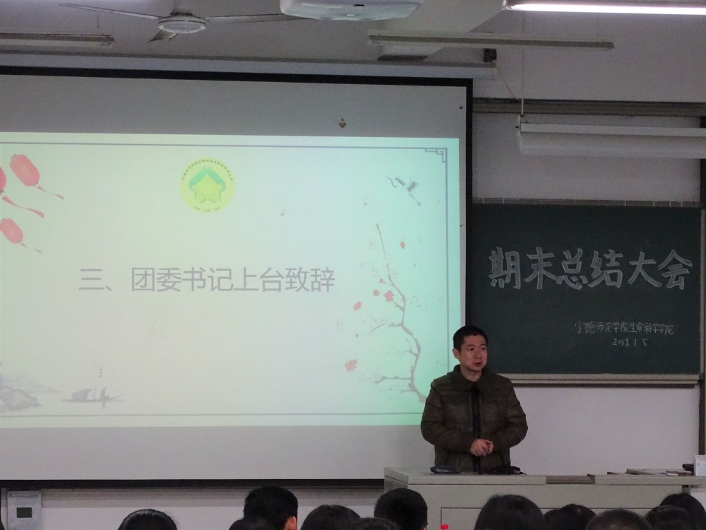 2019年1月5日上午10:00,英国365集团于求实楼CC201举办了生命科学学院团委学生会期末总结大会。本次大会的主持人为学生会现主席钟恒勤,院团委书记兼2016级辅导员王楠楠老师以及2018年团委学生会全体成员出席了本次大会。