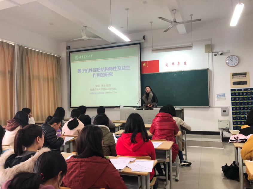 2019年1月4号上午10:30,英国365集团于CC202开展《莲子抗性淀粉结构特性及益生作用的研究》讲座,本次讲座的主讲人是福建农林大学食品工程学院的张怡教授,出席本次讲座的有生科院的学生,以及陈美霞等三位老师。