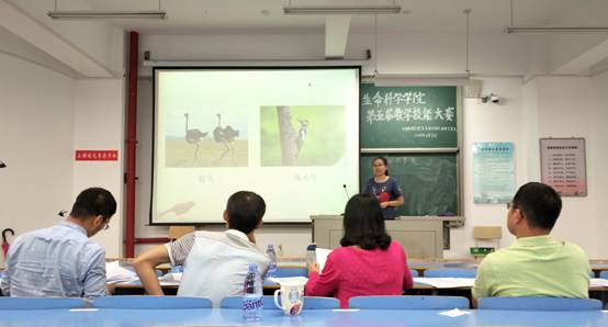 本次比赛规则为选手进行不超过七分钟的片段教学,教学内容选自初中八年级上册生物书。比赛过程中每一位参赛选手都自信满满,用自己缜密的思维和得体的教学语言向评委老师展示自己的教学技能。在精简而又不失重点的七分钟教学后,参赛选手游刃有余地回答评委老师提出的问题。随后评委老师对每一位选手,从教学理念、教学设计、教学方法、教学内容进行点评,表扬了此次参赛选手均已具有较好的教学技能,但同时也存在着需要改正的地方。
