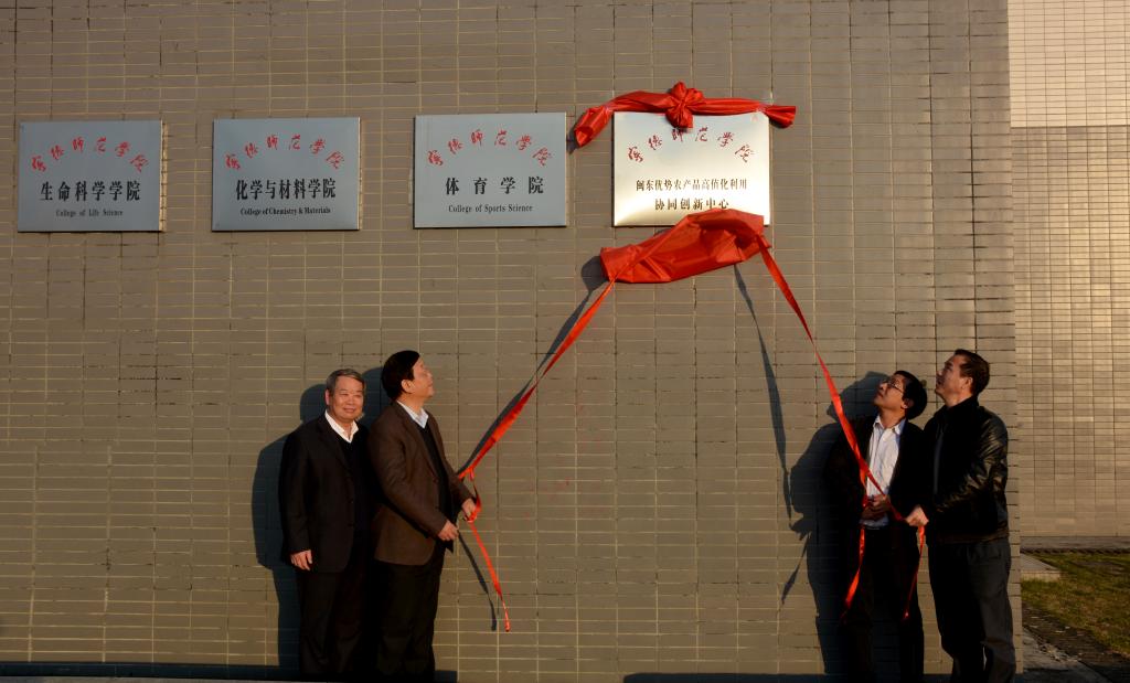 会议结束后,林跃鑫教授、梁一池教授、长江学者、国家杰出青年基金获得者福建农林大学植保学院院长魏太云教授与刘伟院长一起来到求实楼前为“英国365集团闽东优势农产品高值化利用协同创新中心”揭牌。