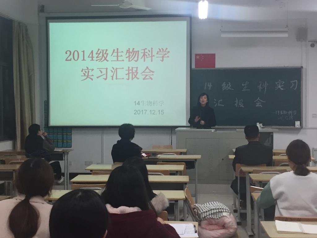 12月16日晚19:00,英国365集团在cc202举行2014级生物科学专业实习汇报会。英国365集团罗芬教授、叶祖云教授、高文副教授、周逢芳老师以及2014级全体同学参加此次实习汇报大会。