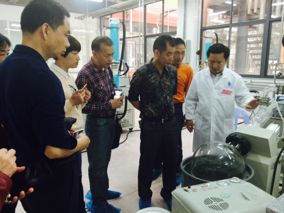 “海洋生物产业化中试技术研发公共服务平台”的负责人洪专教授介绍实验设备