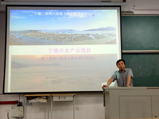 2016年10月26日,李进寿教授在CC201为我系学生开设题为《宁德市水产业现状》的专题讲座。讲座上,李教授谈起了宁德市水产养殖的概况,指出了水产养殖的优势以及产业发展的主要制约因素与相应对策。因宁德市有优厚的自然条件,使得这里的水产业蓬勃发展。其优势条件包括水域广阔水生生物物种资源丰富、水产养殖品种开发能力强等。李教授着重讲解了宁德大黄鱼的发展状况,因大黄鱼养殖与加工工业实力人不断增强和成熟的大黄鱼品牌建设,大黄鱼目前已成为传统的海洋四大主要捕捉对象之首,成为我国的“国鱼”。