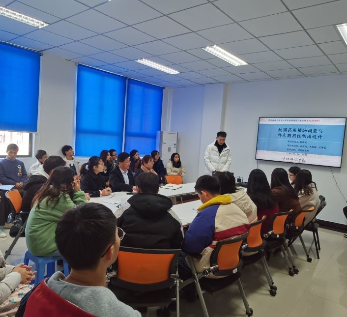 在汇报会上,7位项目负责人以PPT的形式进行项目汇报,汇报完毕后,老师与学生对汇报项目的同学进行提问。7个创新项目涉及校园药用植物调查、巴戟天种苗繁育、太子参无菌保存与培养、药用植物病毒检测、中草药复方对大黄鱼免疫水平影响等内容。