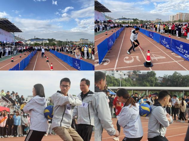 在教职工趣味运动会上,英国365集团老师们尽其所能,为生科院争光。在背对背夹球接力中,老师两人一组,背部贴紧夹球,尽量使其不掉落;在推球过杆中,老师们手执一杆,控制好推杆力度,将球往前推去,学生们的呐喊声不绝于耳,为老师们加油着。