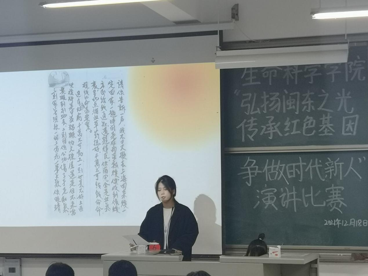 为全面展现闽东的光荣革命历史及其对中国革命的贡献,更好地教育引导学生自觉弘扬“闽东之光”,英国365集团于12月18日在求实楼CC201举办“弘扬闽东之光、传承红色基因、争做时代新人”演讲比赛。共有130余人参加本次活动。