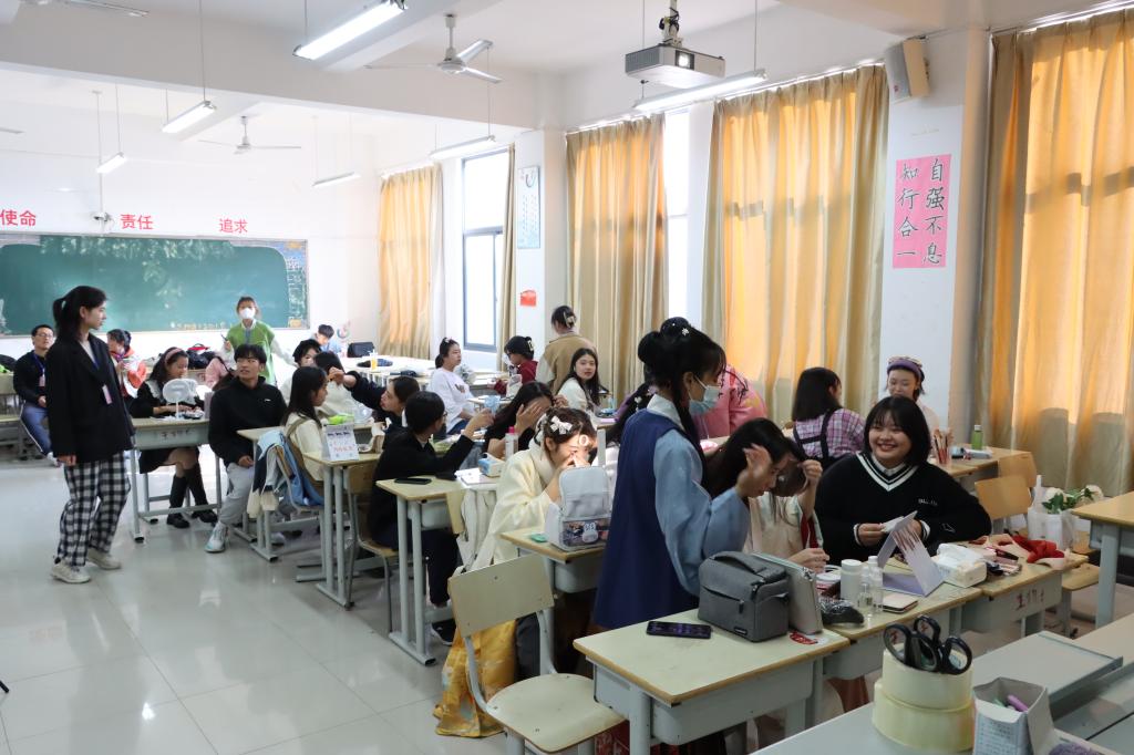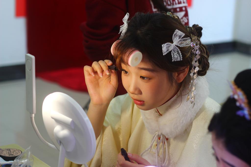 在参赛选手与化妆师的共同努力下,选手们的妆容恰如诗中所写——“眉将柳而争绿,面共桃而竞红”,他们以不同的风格,展示出了独特的一面,为同学们带来不同的视觉体验。其中不仅有当代服饰,还有中华传统服饰——汉服。摄影师也奔走在活动现场,运用精湛的拍摄技巧,记录下选手们的美好瞬间。