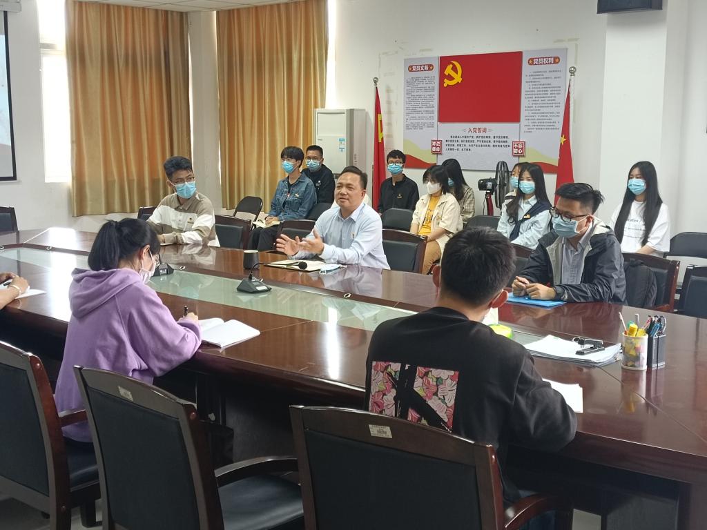 2022年5月10日上午,英国365集团在会议室举办了“学习习近平总书记在庆祝中国共产主义青年团成立100周年大会上的重要讲话精神”座谈会,出席本次座谈会的有院党委书记张秋良、团委书记王永吉、辅导员林慧、李卓霖、林维杰,教师代表魏奇以及团委、学生会、社团负责人。