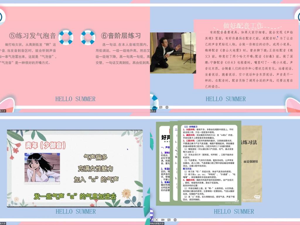她从声音训练、提高能力、互动学习、干货分享四个方面展开本次培训。一是声音训练:呼吸训练、练习绕口令、用抬头方法张口、声带训练、练习发“气泡音”、音阶层练习、练习“饶舌”、夸张四声练习。二是提高能力:她建议同学们可以给无声的电影电视配音,以感受生活中的声音,并通过做早功、练习速度、绕口令、配音软件等方式来提高自己的配音水平。三是互动学习:她列举了各类声音的发声方式并进行亲身示范,期间同学们纷纷踊跃尝试。四是,她分享了配音的小技巧和发声方法。
