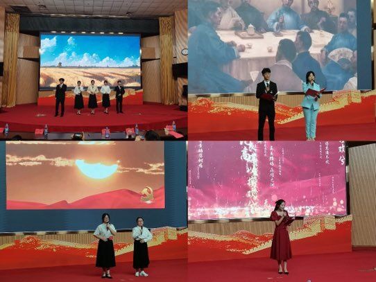 赛场上,选手们昂首挺胸,激情澎湃,抑扬顿挫的朗诵着青春诗篇,舞台的大屏幕上则展示着先辈们筚路蓝缕、开天辟地的奋斗历史。其中张丽梅、李雨晴等5名选手共同朗诵的《献礼二十大,奋进新征程》,句句铿锵有力、字字震撼人心,他们将他们的理想奋斗融于文字中,用他们青春精神向现场观众展现出宁师学习的风貌。刘益彤、黄金铭选手朗诵的《学习二十大,红心颂党恩》,声情并茂,极富表现力,展现出他们一个信念跟党走,颗颗红心报党恩的信念。徐志慧、宁凡选手和李晓莉的作品《红船,从南湖启航》和《我骄傲,我是中国人》,语句中透着他们的坚毅与自信,展现出他们对国家的热爱和对祖国富强的由衷欢喜。