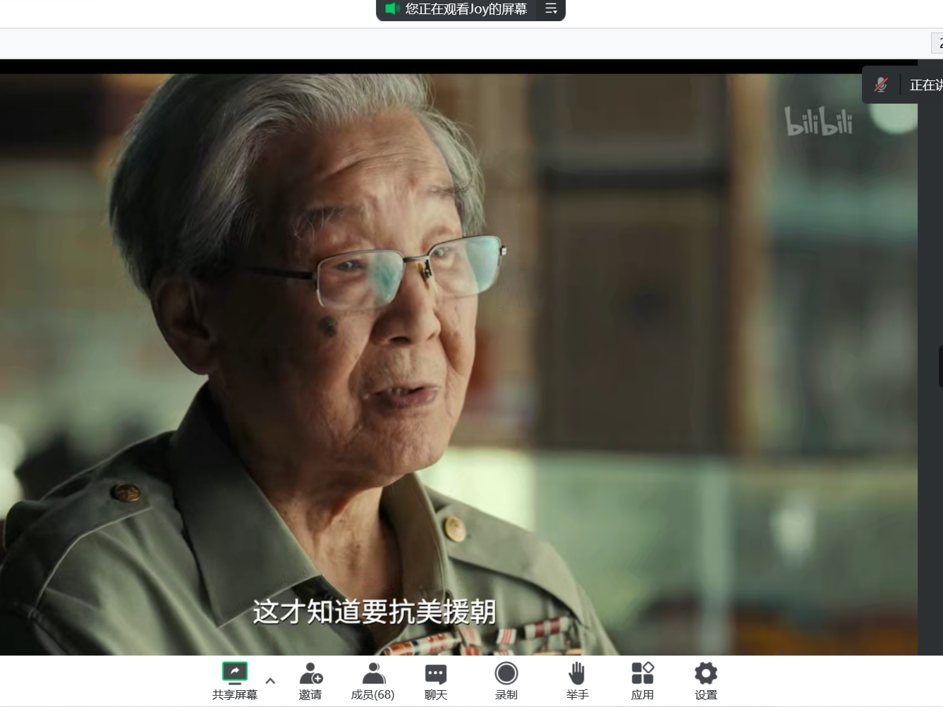 本次活动观看的影片为《1950他们正年轻》,该纪录片取材自1950年抗美援朝战争,宋坤儒导演先后陆续采访了五十多位志愿军老兵(最后呈现在纪录片上的有26位),通过不同军种、不同时期参战的老兵的回忆,讲述了参加抗美援朝战争的普通年轻人的故事。该片对准的是宏大之下的“历史的一角”,给人以正能量与情感共鸣。