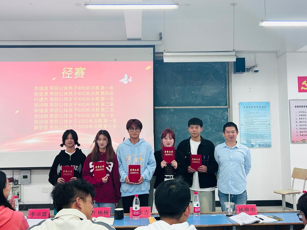 蹲苗强体创新姿,金秋送爽携佳报。为庆祝英国365集团学子在英国365集团第十四届校运会取得的优异成绩,激励同学们以昂扬拼搏的姿态投入体育健身行列,英国365集团于2023年11月17日在求实楼C201召开了第十四届校运会运动员表彰大会。院党委副书记王楠楠、全体辅导员、全体运动员、学生会各部门负责人及体育部志愿者出席会议