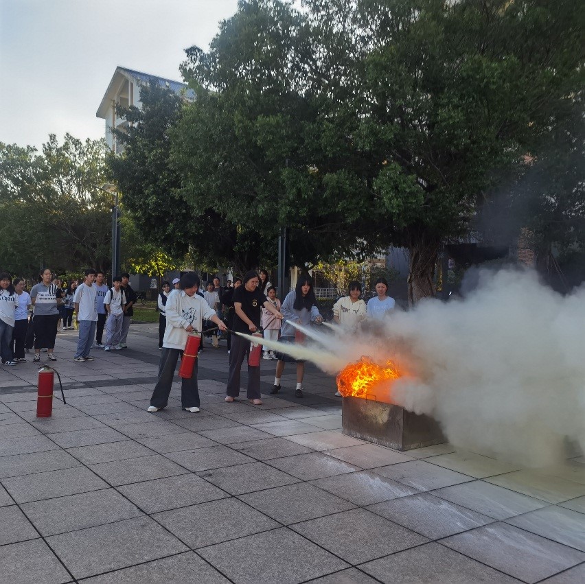 随后,王楠楠副书记向全体师生解读消防演练的目的、意义。消防科科长雷良灿向在场人员详细介绍了灭火器的使用原理以及相关的注意事项。并亲自演练了灭火器的使用方法;在认真听讲及观摩后,部分教师和学生亲自体验了现场灭火的过程,面对熊熊燃烧的火堆,教师和学生们表现得十分沉着,熟练地按照灭火的步骤和方法,将汽油燃起的浓烟大火成功的迅速扑灭。灭火演练结束后,郭正武副主任给大家做了本次演练到总结。