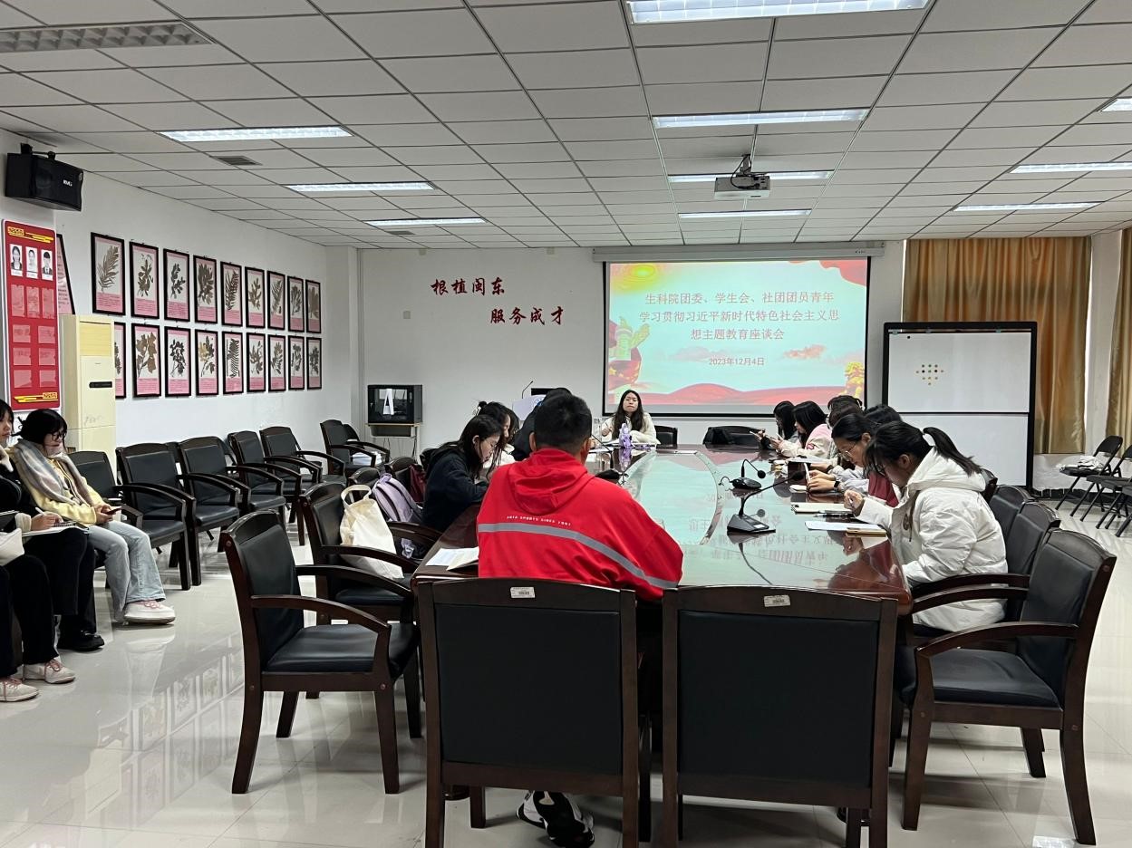 根据校团委关于开展学习贯彻习近平新时代中国特色社会主义思想主题教育通知要求,2023年12月3日英国365集团组织团委、学生会、社团团员青年开展了学习贯彻习近平新时代中国特色社会主义思想主题教育座谈会。院团委书记王永吉,24名学生干部参会。
