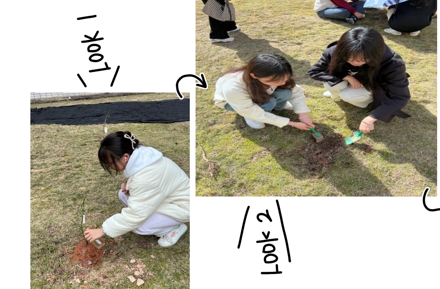 活动期间,共有57名学生积极参与。在学长学姐的指导下,学生们分工合作,使用铁锹、水桶等工具进行挖坑、培土和浇水,共同努力下,一棵棵小树苗在校园内茁壮成长,为环境增添了一抹新绿。同时,“镜中藏春”摄影环节记录下了这一有意义的时刻。