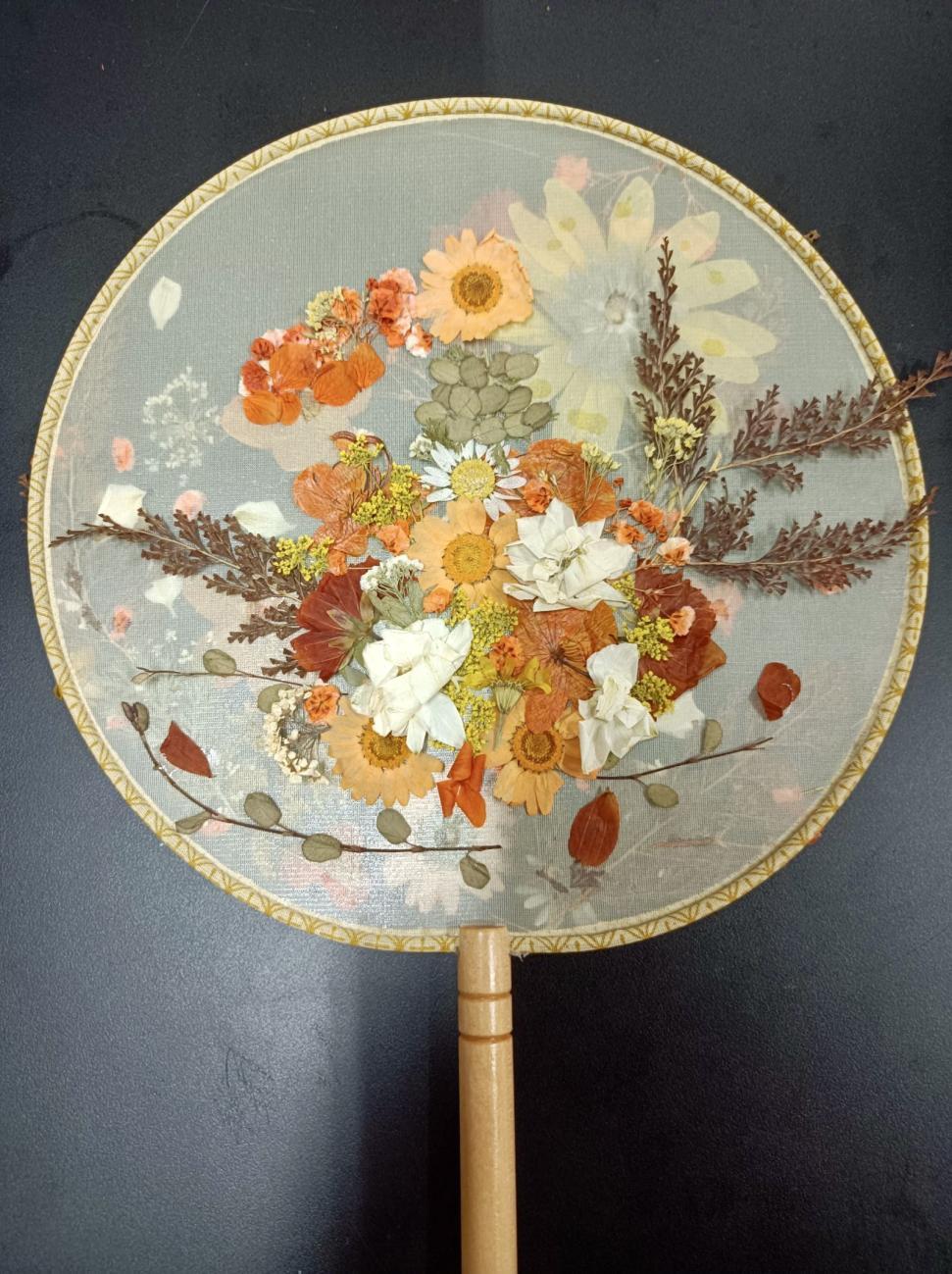 在活动中,自然坊主要负责“闽东特色植物标本的展示”与“压花团扇制作”两个项目模块。自然坊的志愿者们向同学们介绍了植物标本,并详细讲解了压花团扇的制作步骤和技巧。在他们的引导下,同学们积极动手尝试,相互交流学习,活动氛围热烈而和谐。