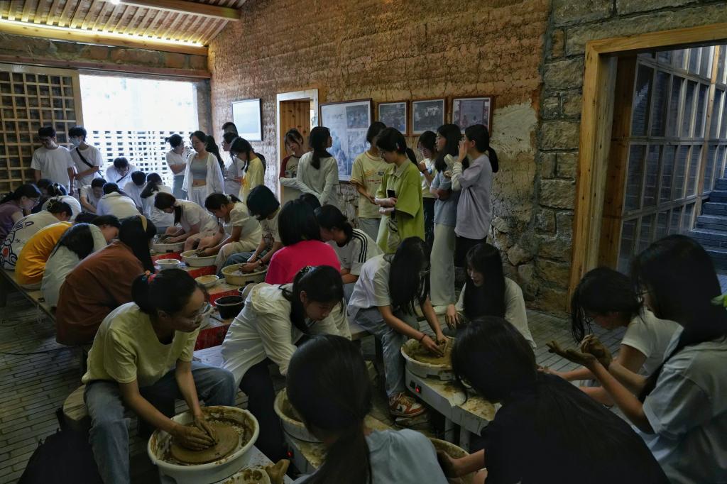 7月1日上午,同学们抵达周宁县,在福建省海雾茶业有限公司,同学们了解了“云端之城”的茶文化历史,领略海雾海业“心清相明”的企业文化及其在各大茶王赛中所取得的优异成绩;在福建春好食品科技有限公司,公司负责人王晓琴带领同学们观摩茉莉花茶的精制车间,在生产第一线探寻茉莉花茶“鲜灵”香气的工艺密码;在浦源镇萌源村月山古龙窑的参观中,我们领略了传统制周宁传统硋技艺的质朴与美好。制硋世家的第八代传人肖永灿向同学们详细介绍了硋器的历史渊源、烧制流程及文化内涵,传统的非遗工艺与现代审美的结合让同学们颇受震撼。