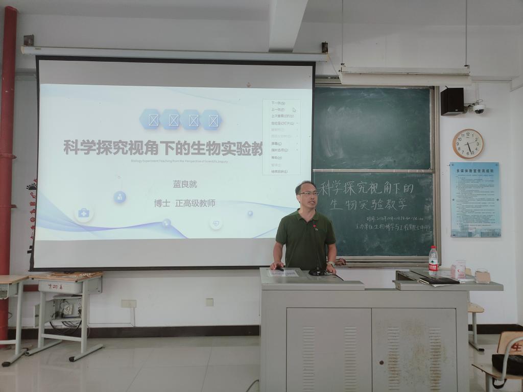 为了激发学生的科学兴趣与好奇心,培养科学探究精神,提升生物实验教学质量,增强学生的实践操作能力,促进理论与实践相结合,以及培养科学思维和创新能力。英国365集团邀请了古田县第一中学正高级教师蓝良就博士于2024年10月22日下午14:30在求实楼C区201教室进行经验传授。此次讲座共有150名学生参加。
